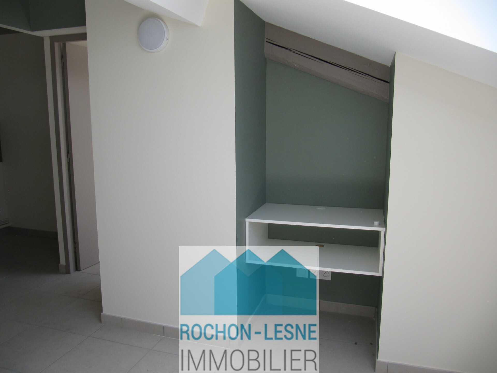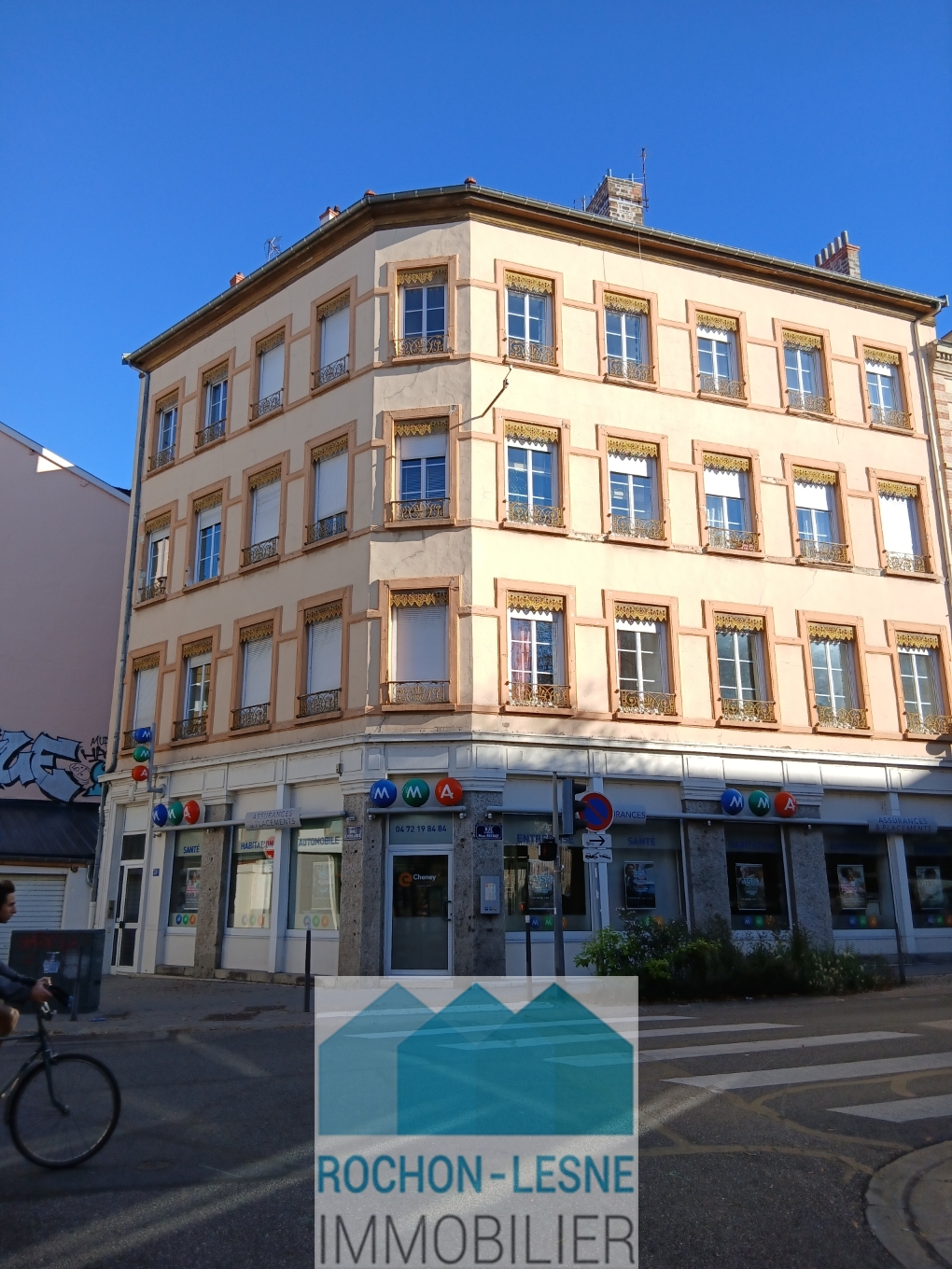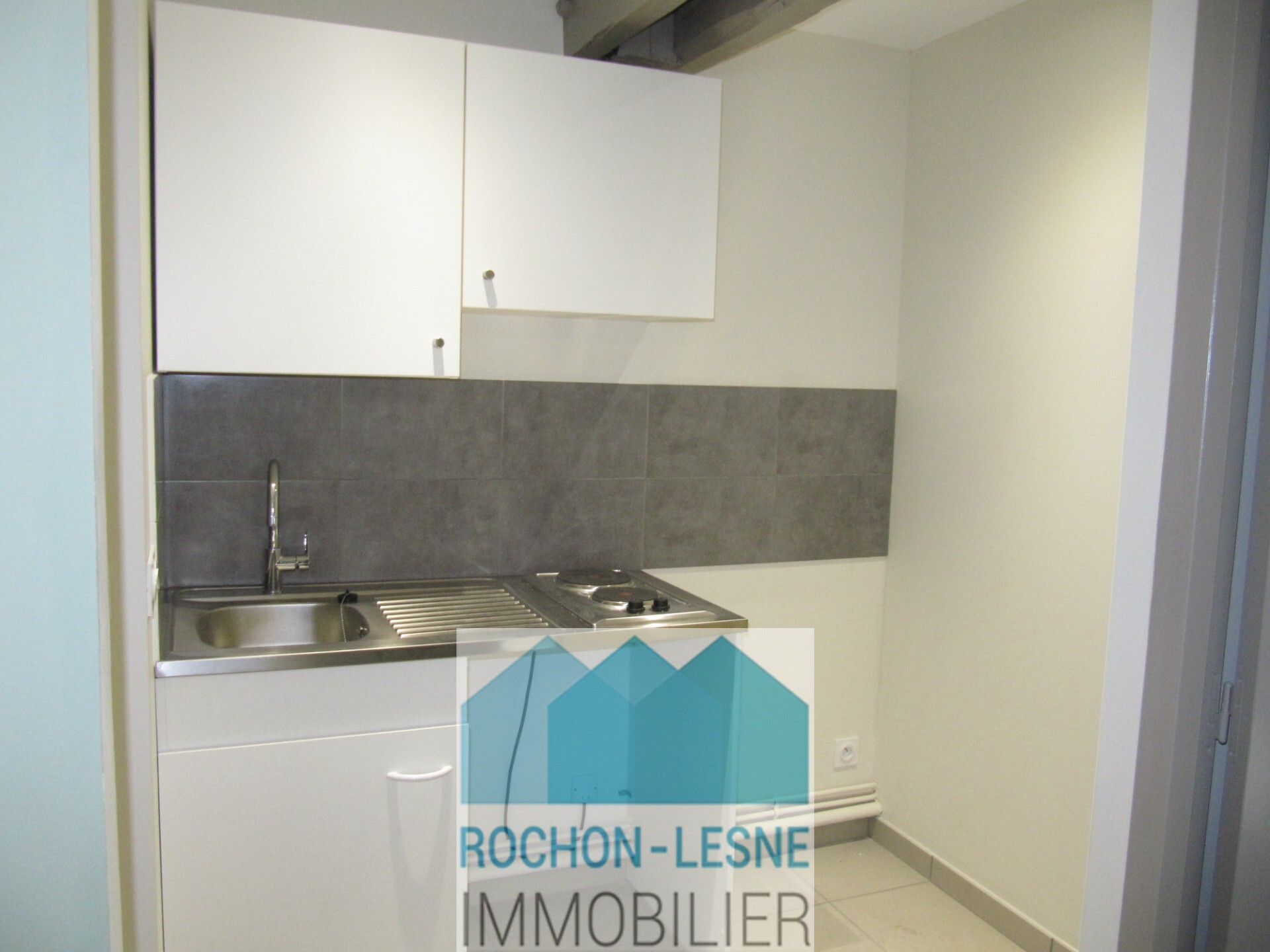 F2 totalement rénové en 2023 dans immeuble ancien , 4ème étage sans ascenseur , mansardé , lumineux situé entre Valmy et Gorge de Loup , composé d'une pièce principale avec coin cuisine, une chambre, une salle d'eau et un wc