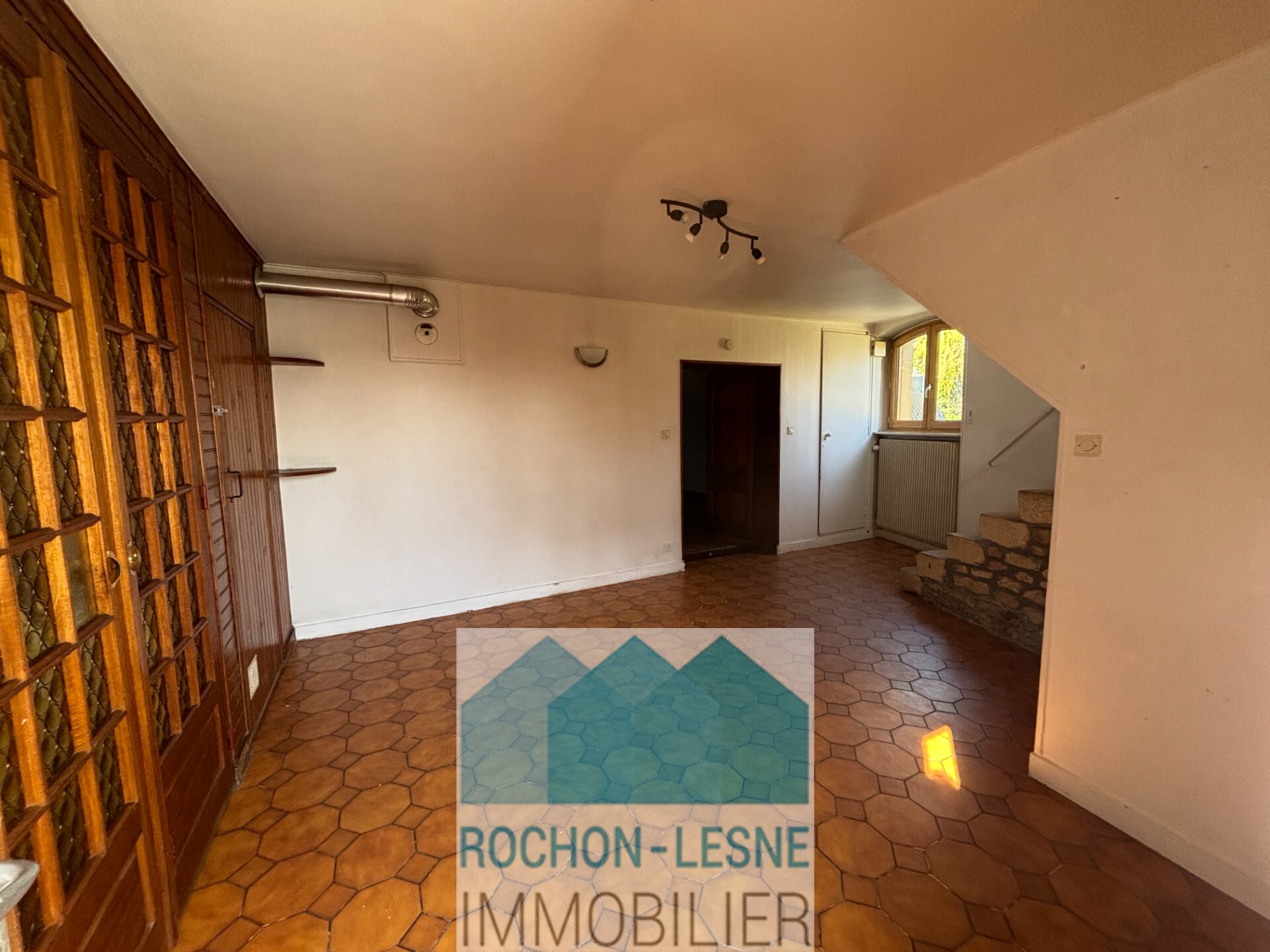 A voir Maison F4 esprit campagnard au cœur des vignes composée au rdc d'une entrée, un séjour avec poêle à bois, une cuisine équipée de meubles hauts et bas, une plaque de cuisson 4 feux gaz, une hotte et un wc. A l'étage, 3 chambres dont 2 en enfilade, une salle d'eau. A l'extérieur un cellier avec branchement pour la machine à laver.